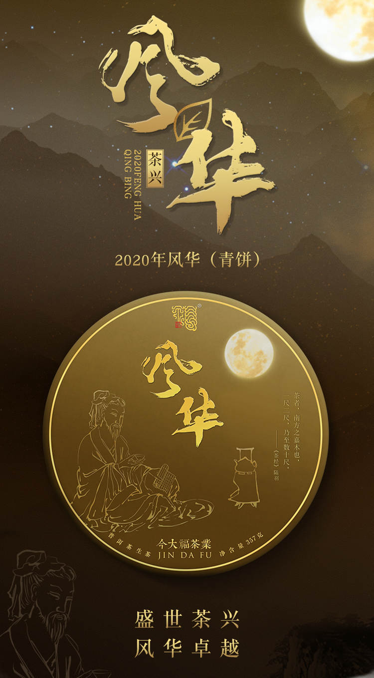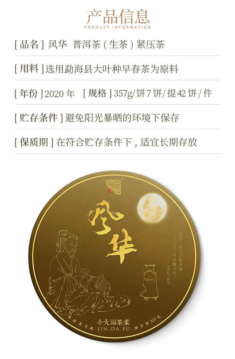 2020年今大福 风华青饼 普洱茶生茶 357克七子饼