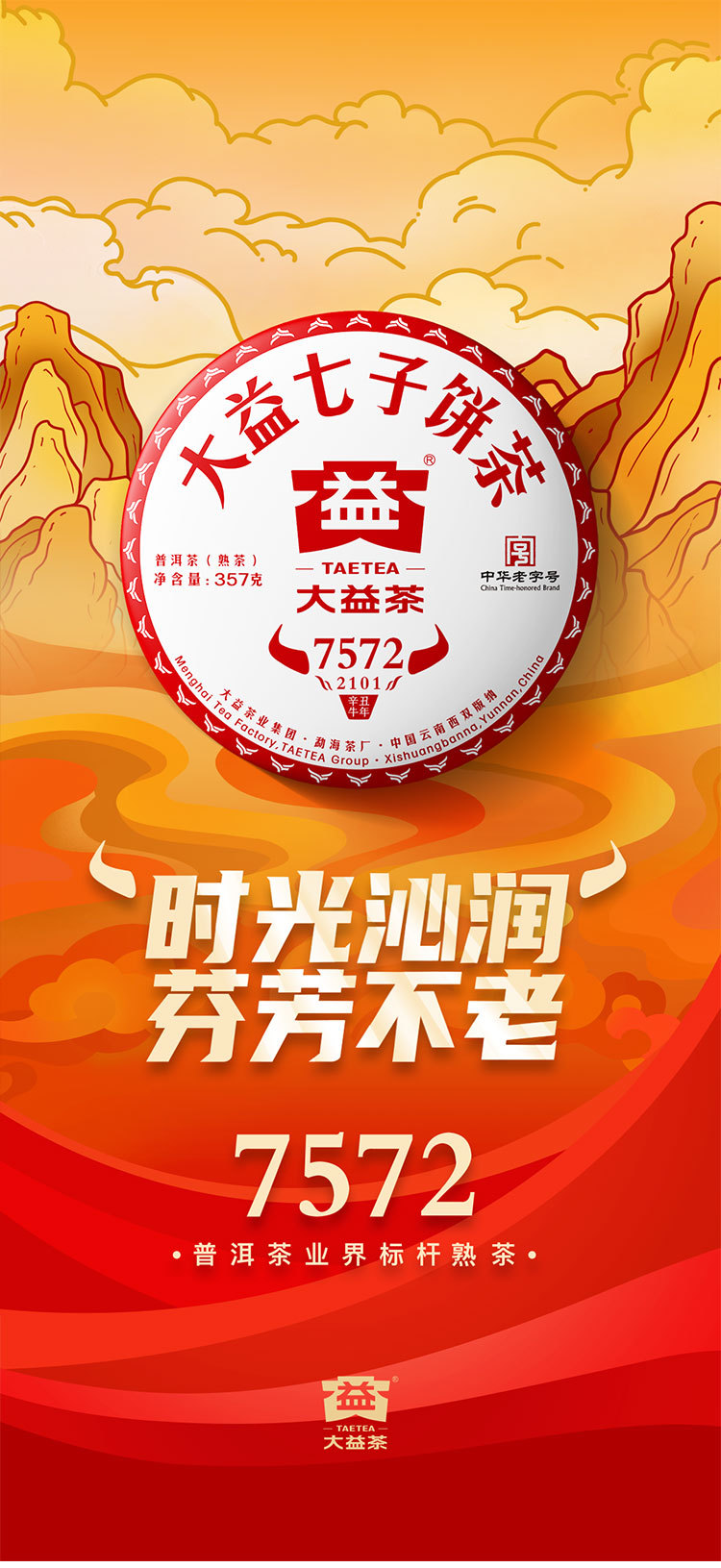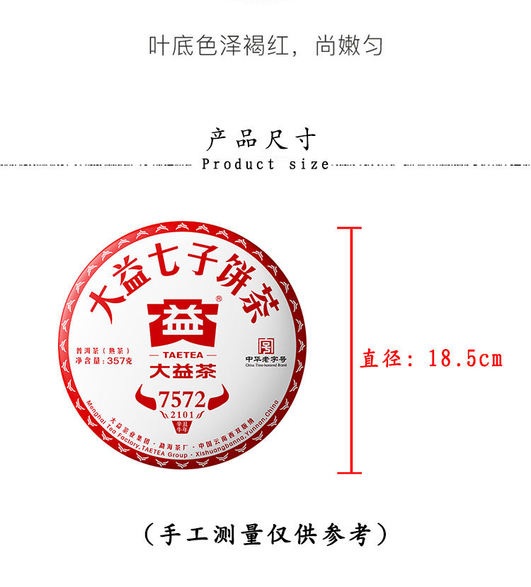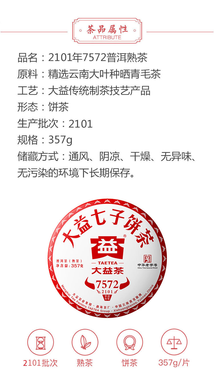 2021年大益 7572熟茶七子饼 357克饼茶