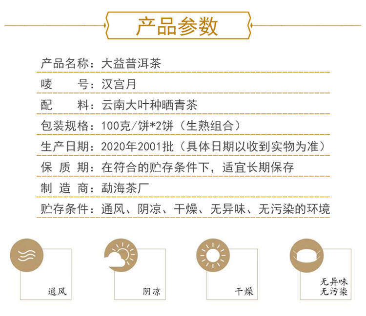 2020年大益 汉宫月 生熟小饼 100g*2盒 组合 2001批