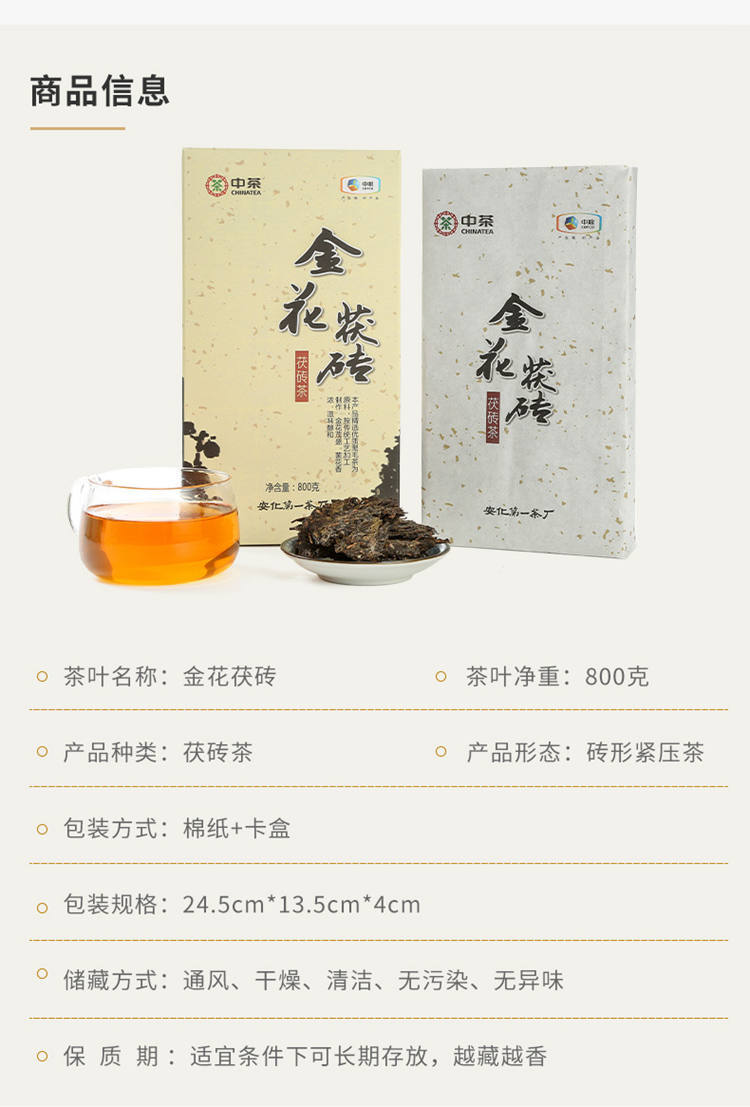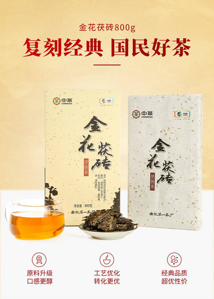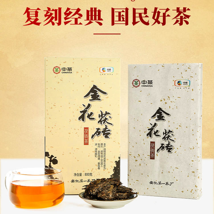 2024年中茶 安化黑茶 金花茯砖 800克 经典茯茶