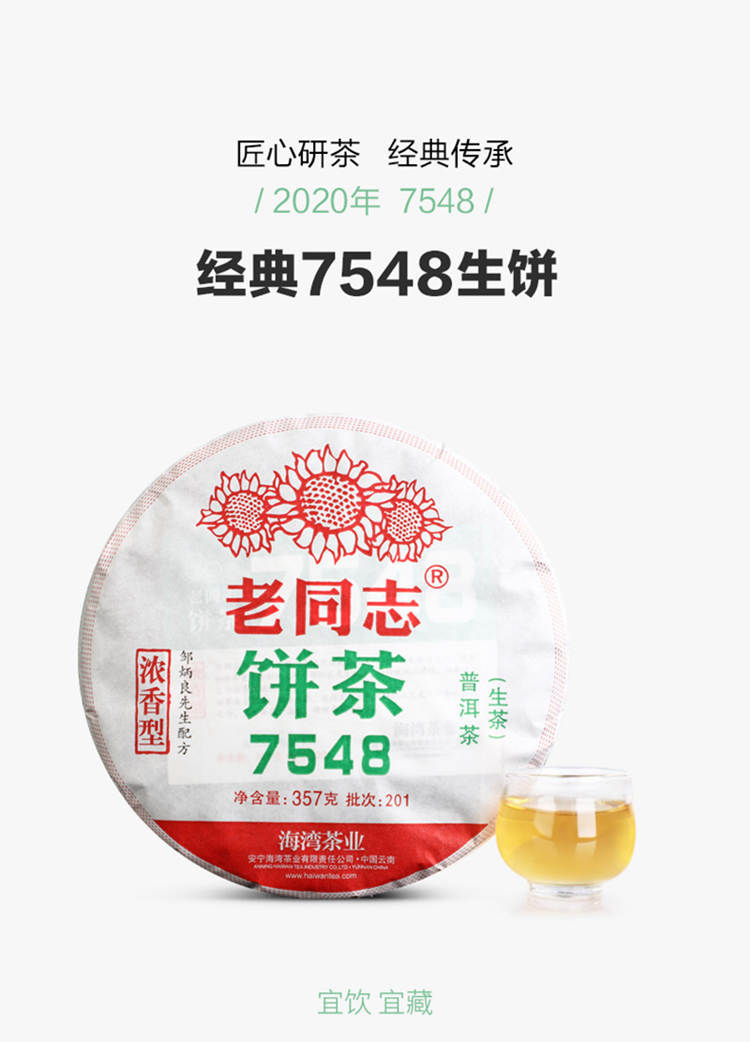 2020年老同志 7548生饼 经典75配方 357克饼茶