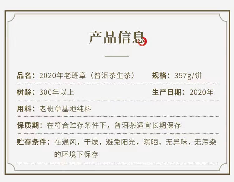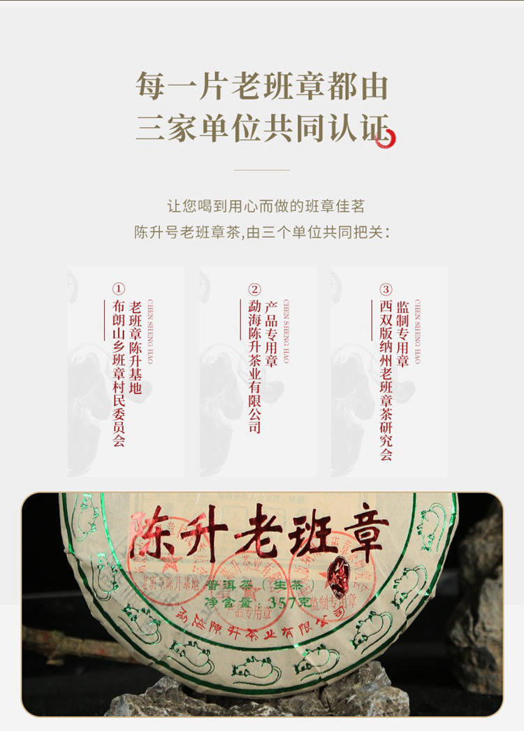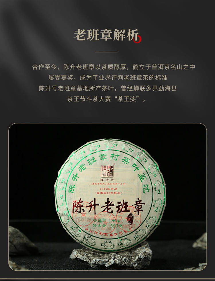 2020年陈升号 老班章饼茶 357克古树茶生茶七子饼