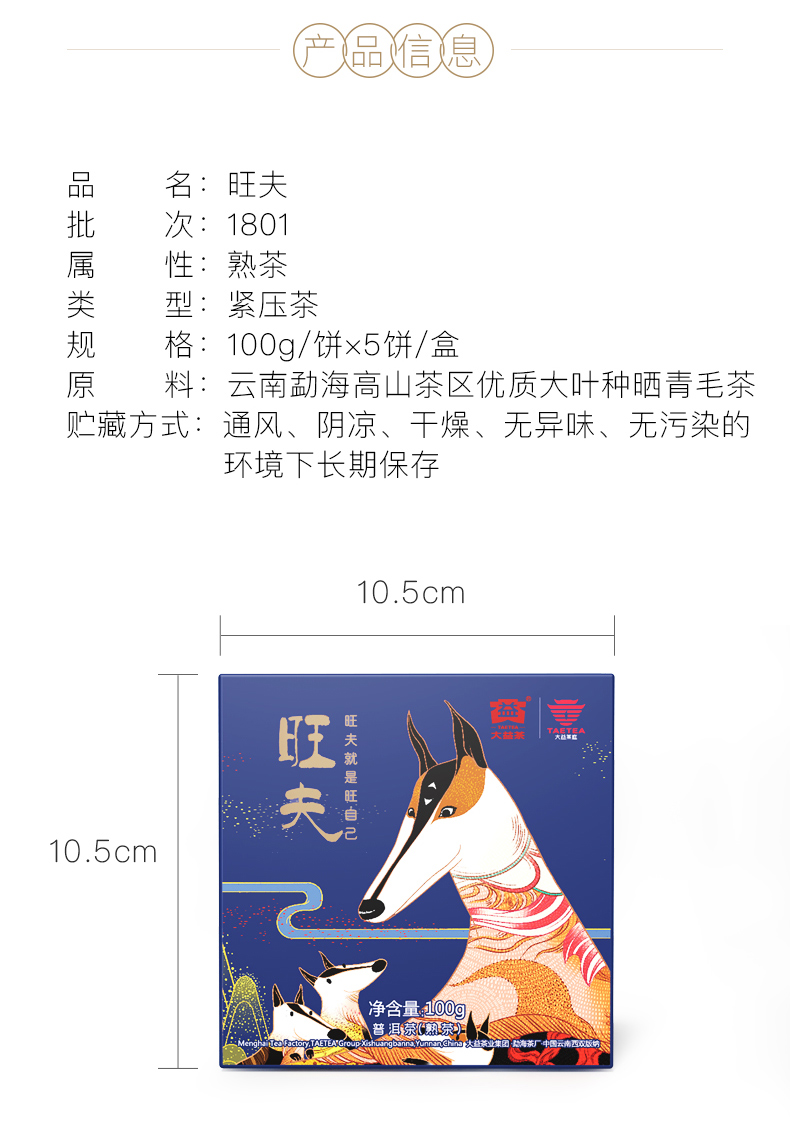 2018年大益 旺夫饼茶 100克熟茶 普洱茶