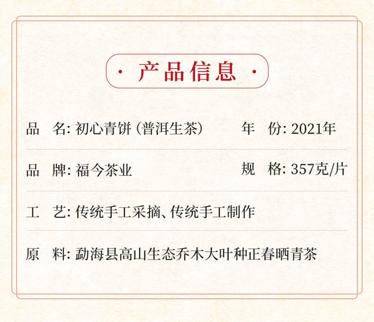 2021年福今茶业 初心青饼 生茶 357克七子饼