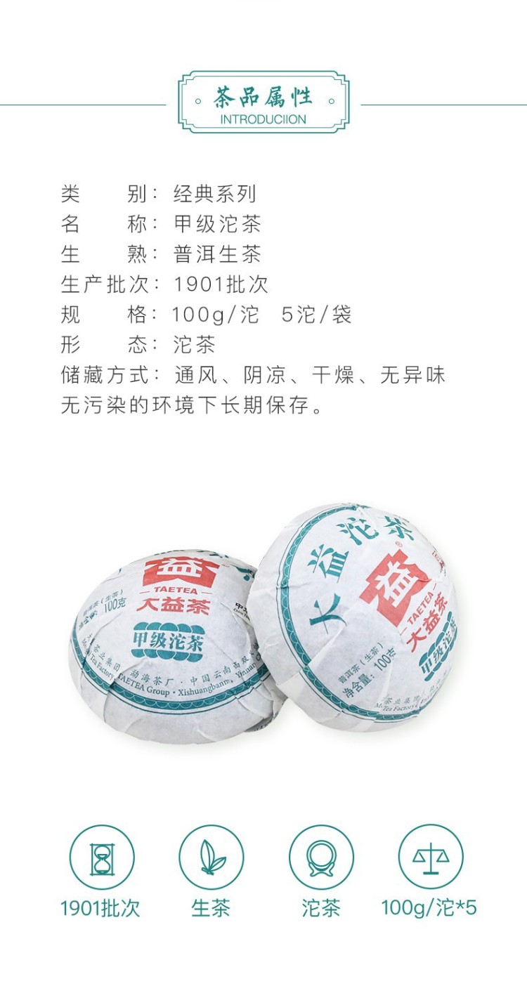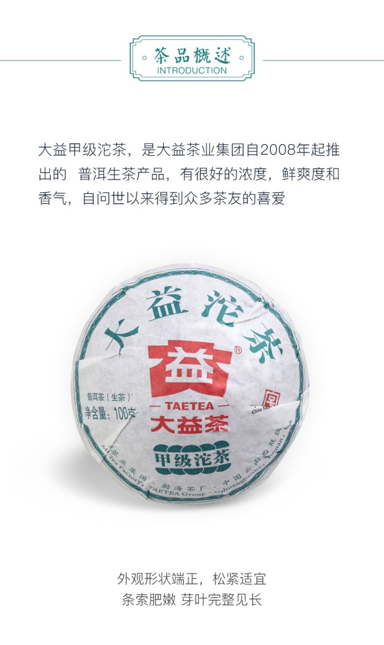 2019年大益 甲级沱茶 100克生茶