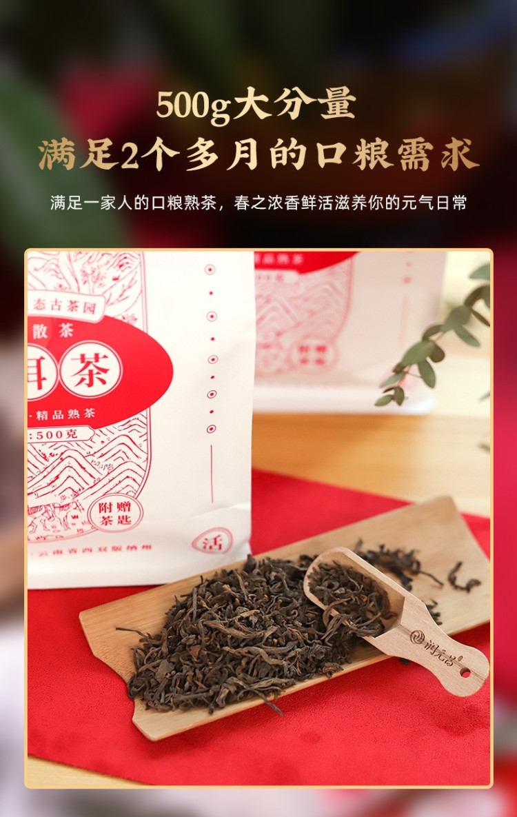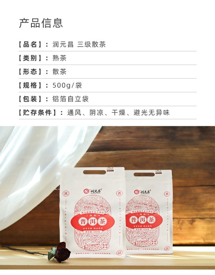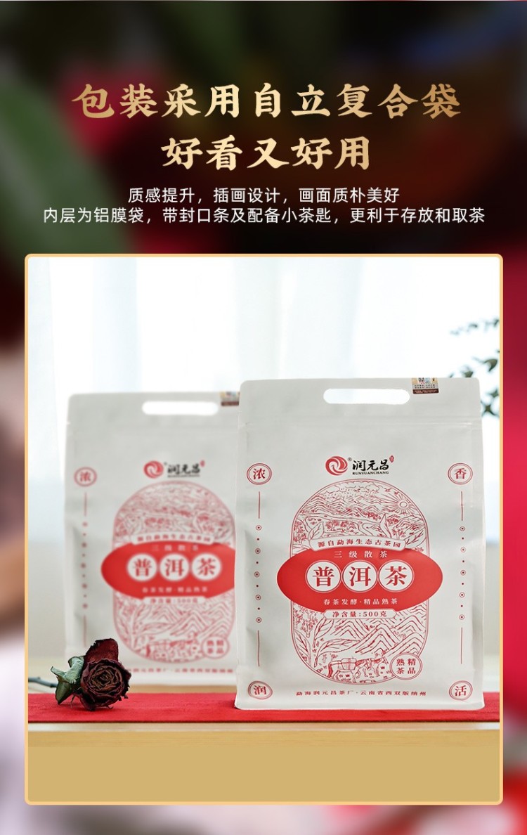 2018年润元昌 三级散茶熟茶 勐海高山大树春茶发酵 500克