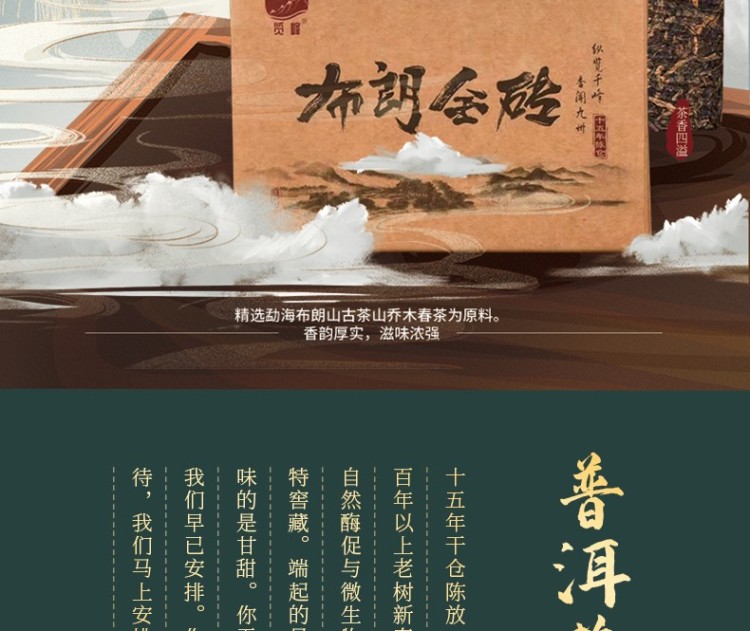 2021年览峰茶叶 布朗金砖生茶 250克砖茶
