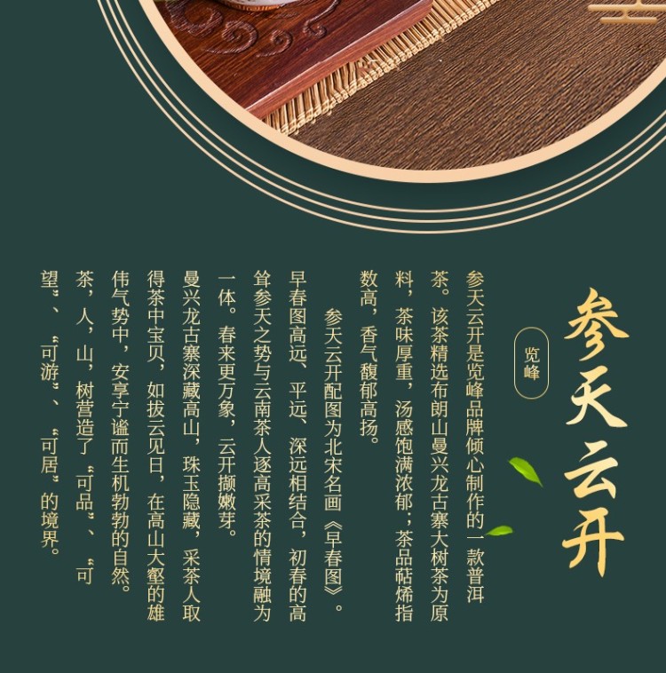 2021年览峰茶叶 参天云开生茶 勐海布朗山大树茶 357克 饼茶