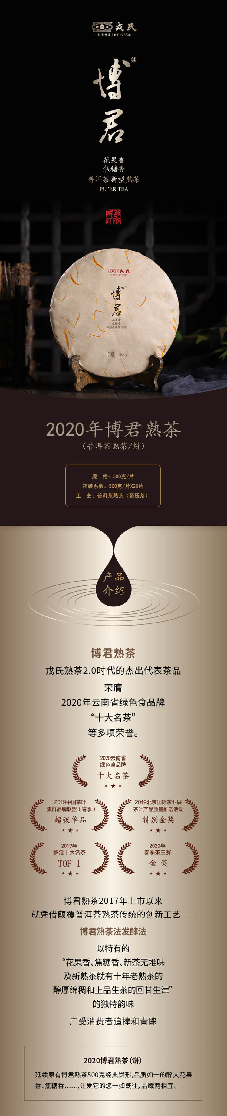 2020年勐库戎氏 博君熟茶 500克七子饼云南十大名茶