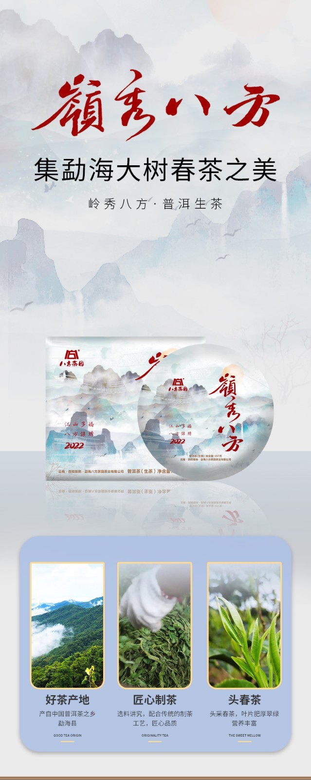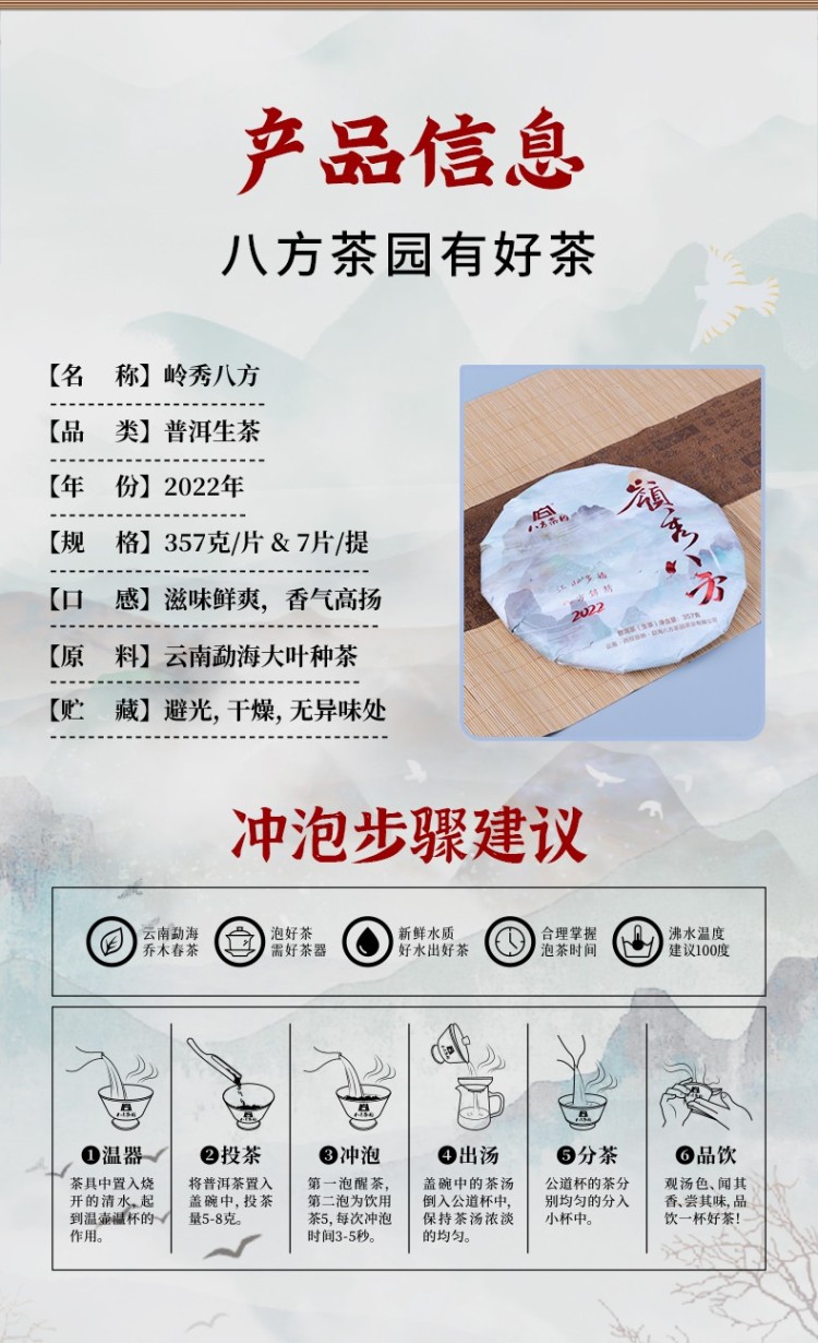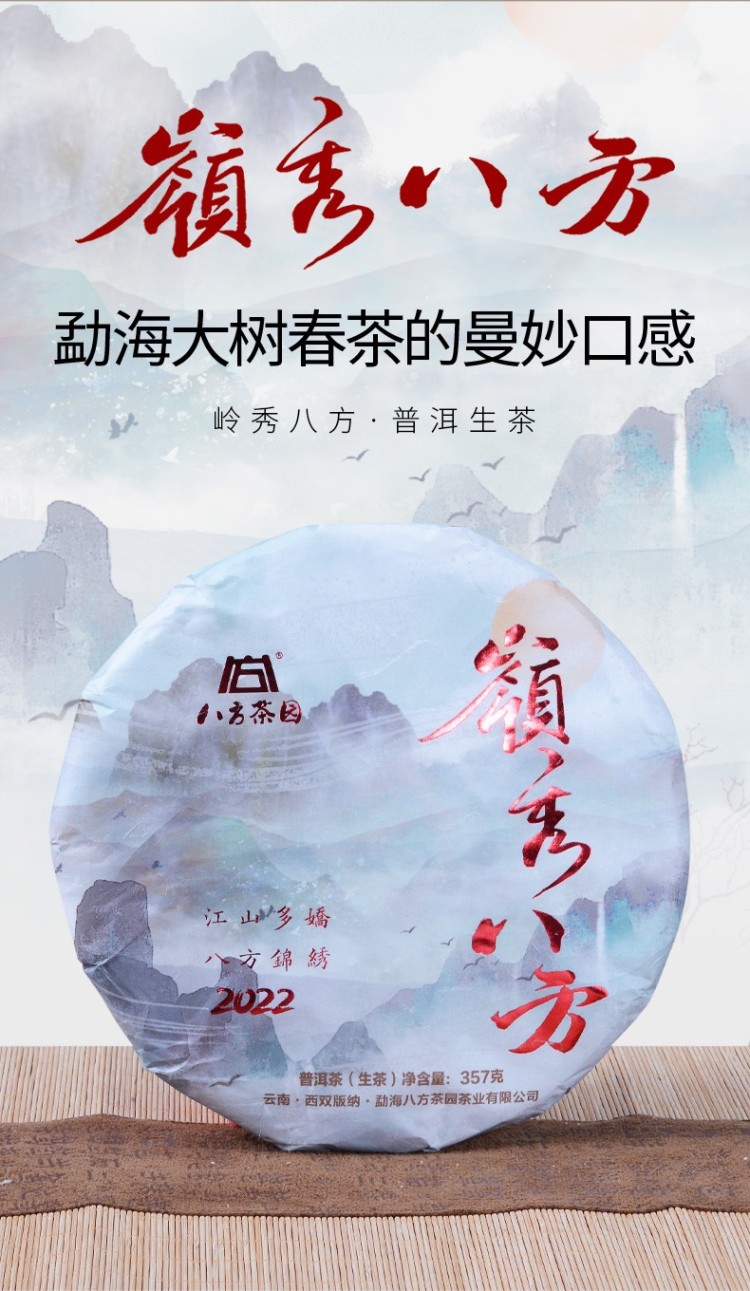 2022年八方茶园 岭秀八方357克 七子饼普洱生茶