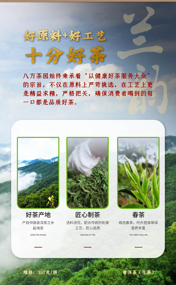 2022年八方茶园 兰韵 357克七子饼普洱生茶