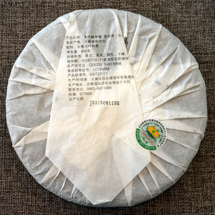 精选2011年临沧茶区早拨大叶种鲜叶为原料,叶肥、芽壮、体型肥大,饼形显毫油润,松紧适度,茶条清晰、自然美观,茶汤金黄剔透,香高悠长,滋味浓厚,回甘生津持久。