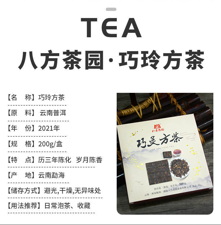 2021年 八方茶园巧灵方茶200克普洱熟茶