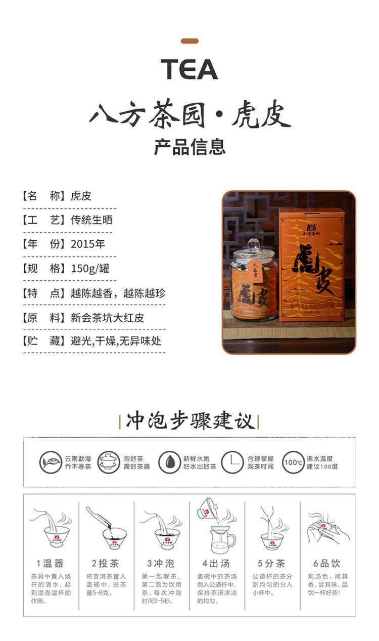 2021年 八方茶园虎皮新会陈皮(2015茶坑大红皮)150克