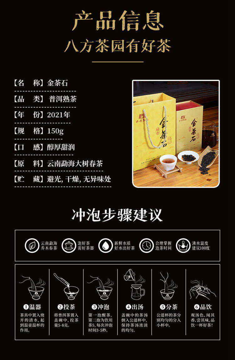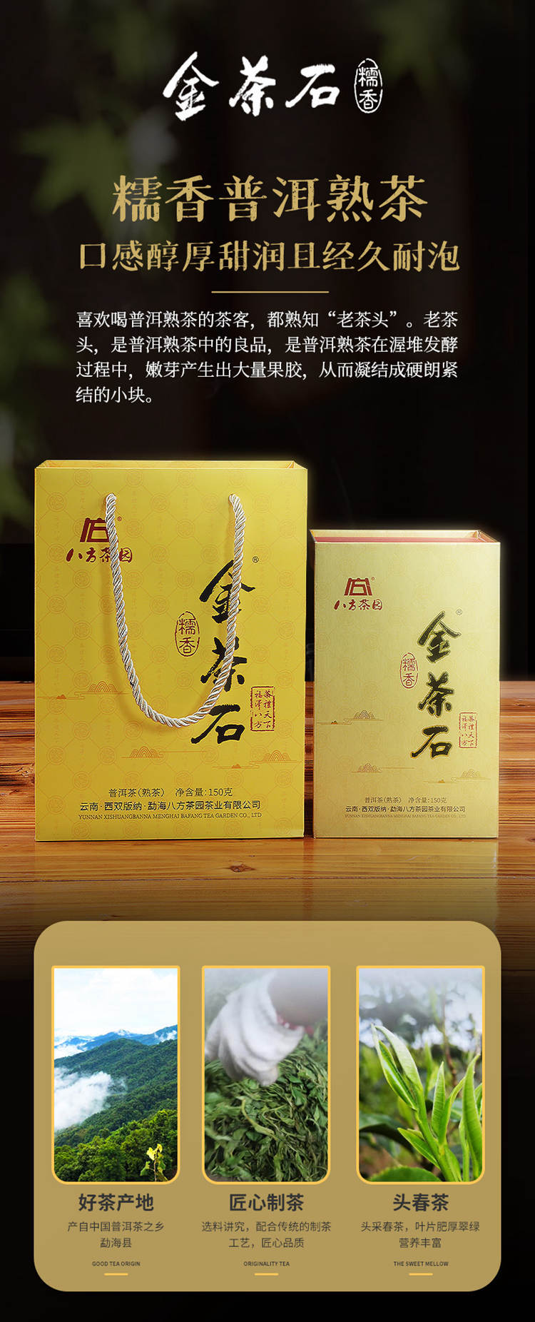 2021年 八方茶园金茶石老茶头150克普洱熟茶