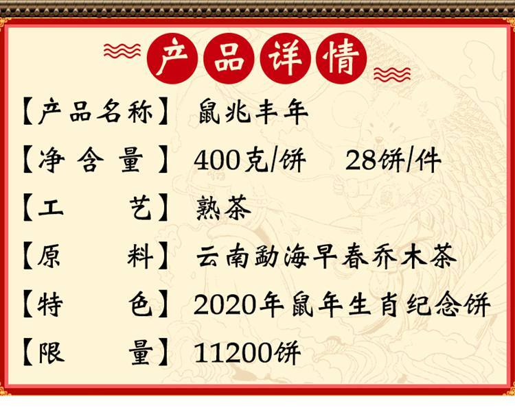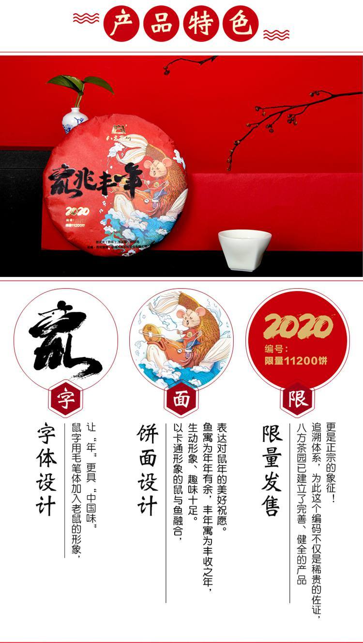 2020年 八方茶园鼠兆丰年400克普洱熟茶