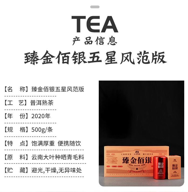 2020年 八方茶园臻金佰银500克普洱熟茶