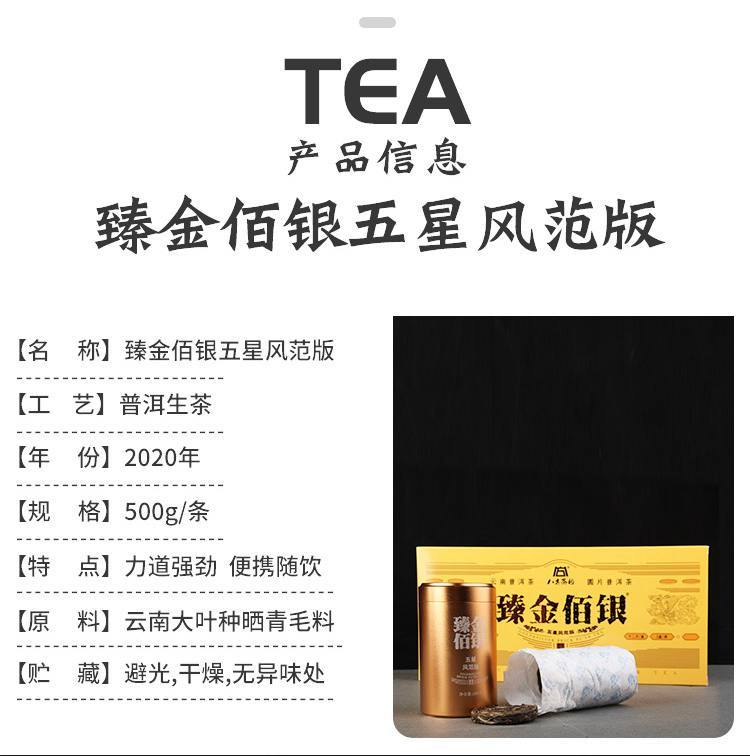 2020年 八方茶园臻金佰银500克普洱生茶