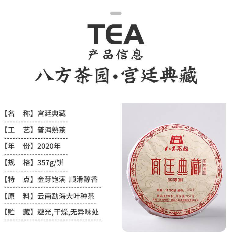 2020年 八方茶园宫廷典藏 357克普洱熟茶