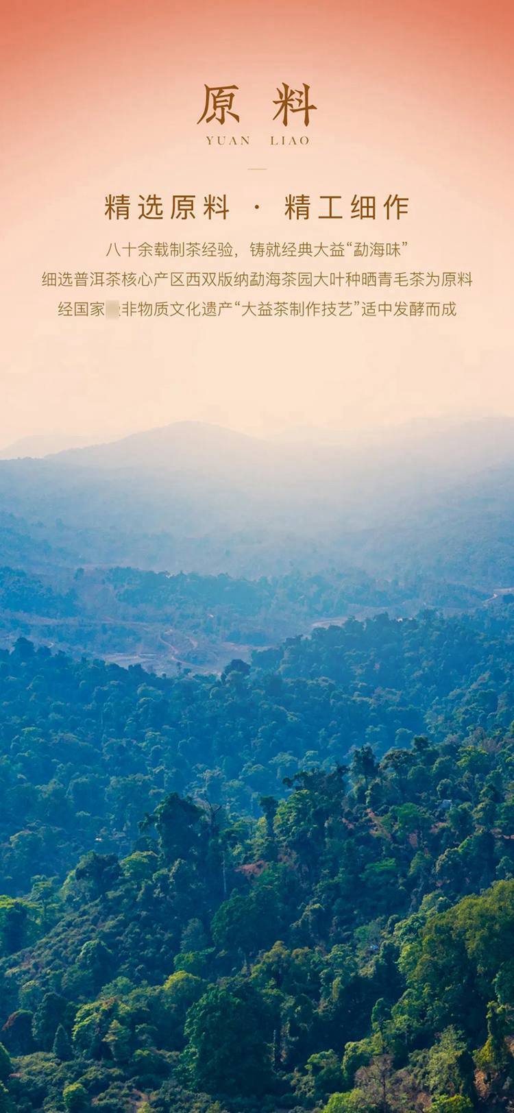 勐海茶品的传统味道,采用勐海地区大叶种晒青毛茶为原料,进行发酵而成。