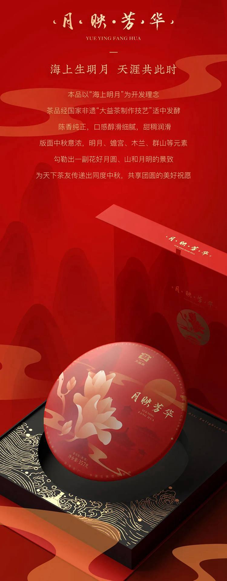 2022年大益 礼盒月映芳华357g普洱熟茶 中秋茶礼