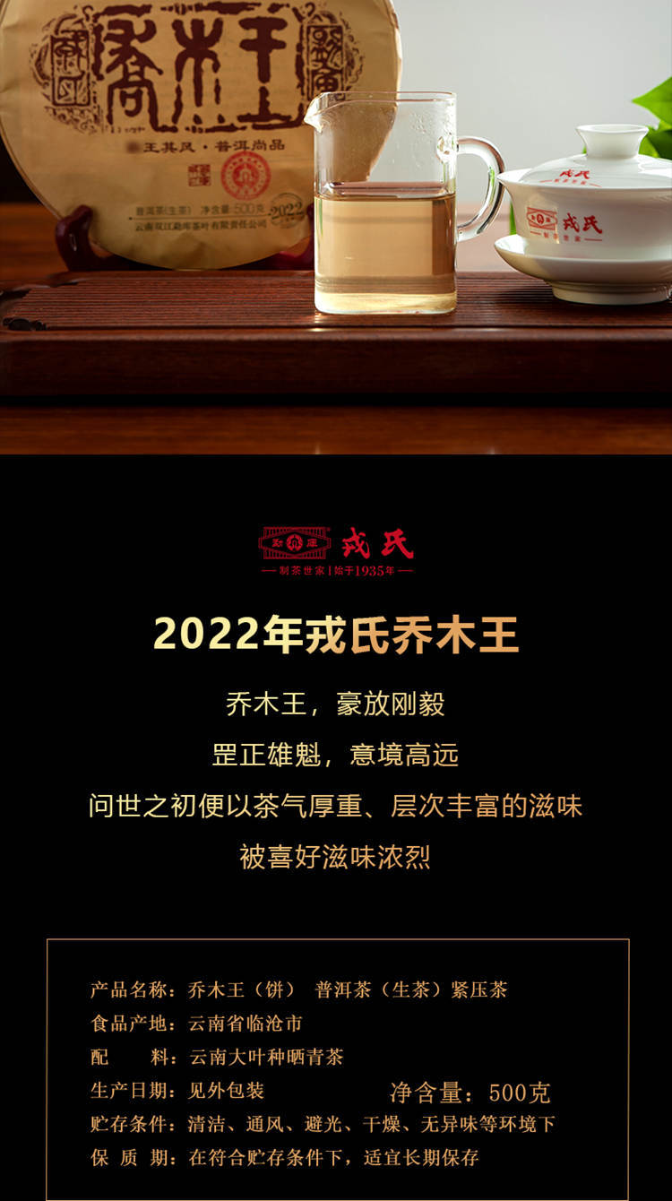 2022年勐库戎氏 乔木王生茶 500克七子饼