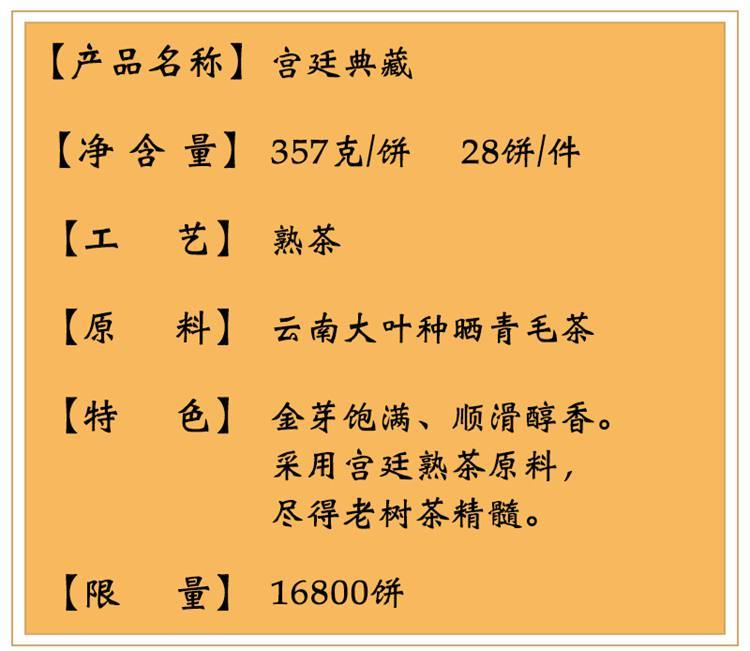 2019年八方茶园 宫廷典藏普洱熟茶 357克