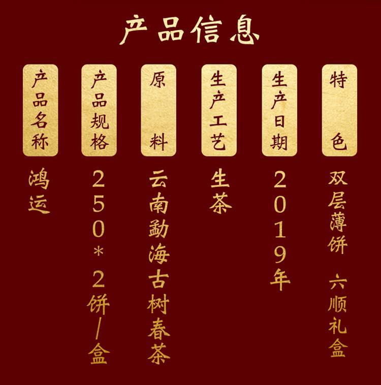 2019年八方茶园 鸿运普洱生茶250*2/盒