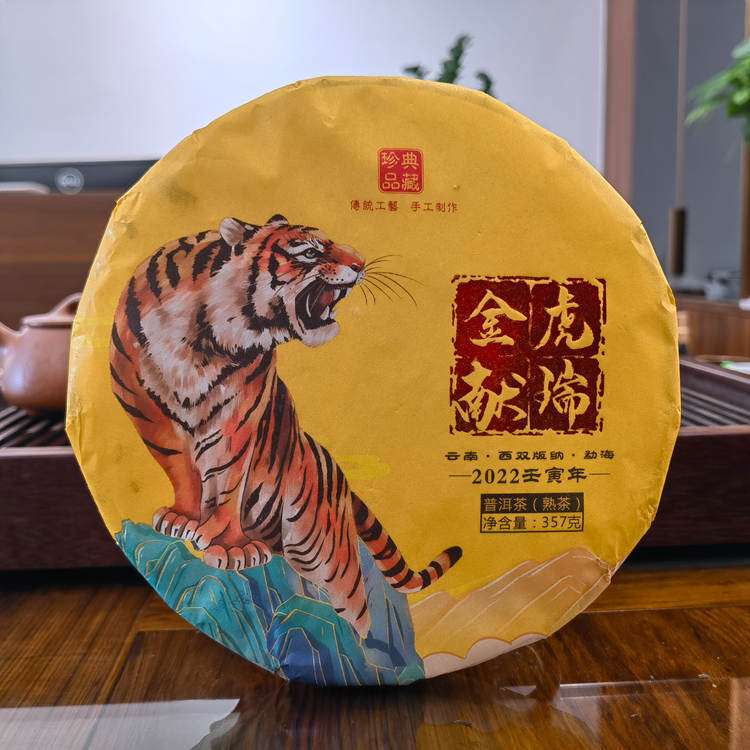 2022年国饮 金虎献瑞熟茶 357克七子饼
