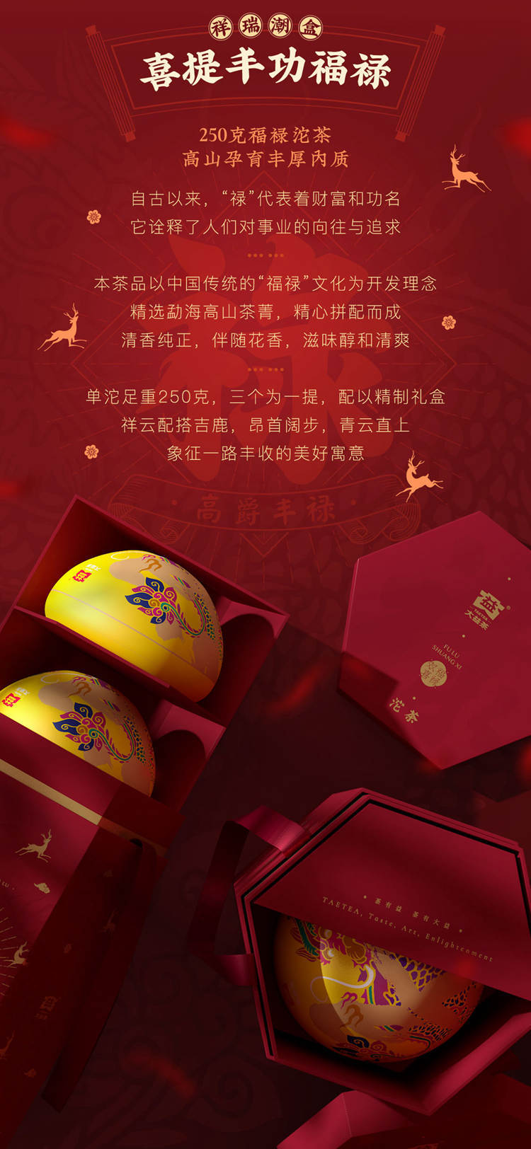 2022年大益 福禄双喜 沱茶生茶 250克*3 礼盒装