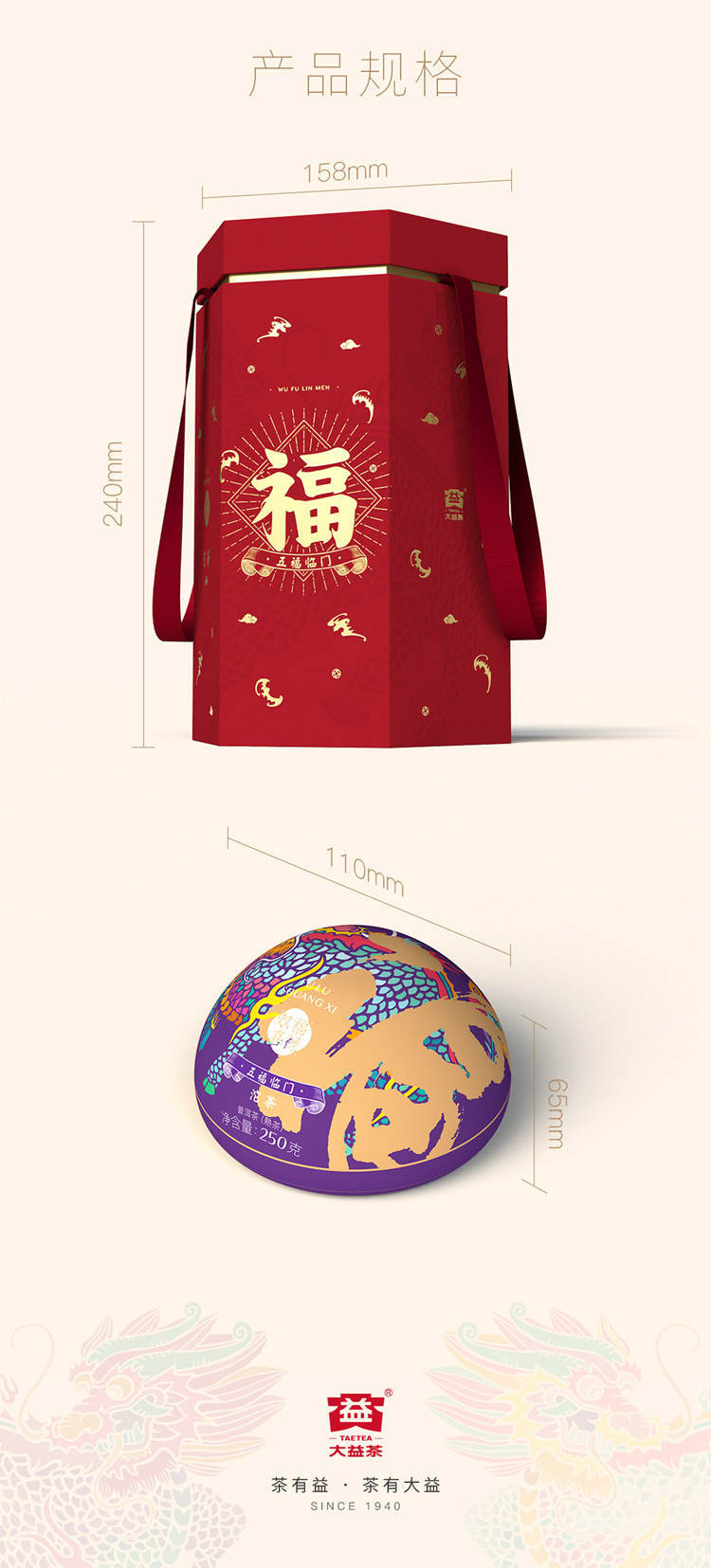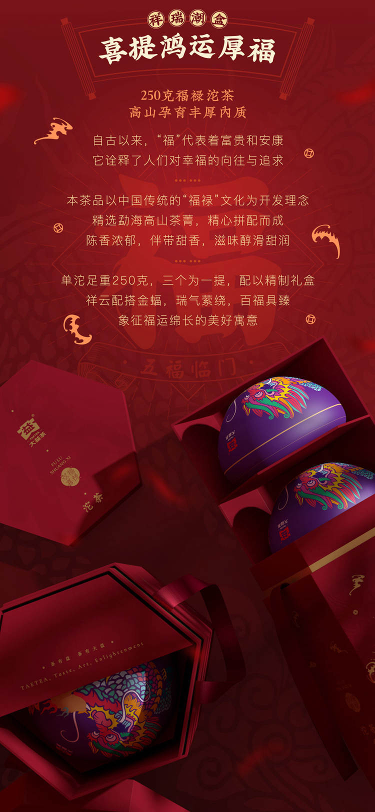 2022年大益 福禄双喜 沱茶熟茶 250克*3 礼盒装