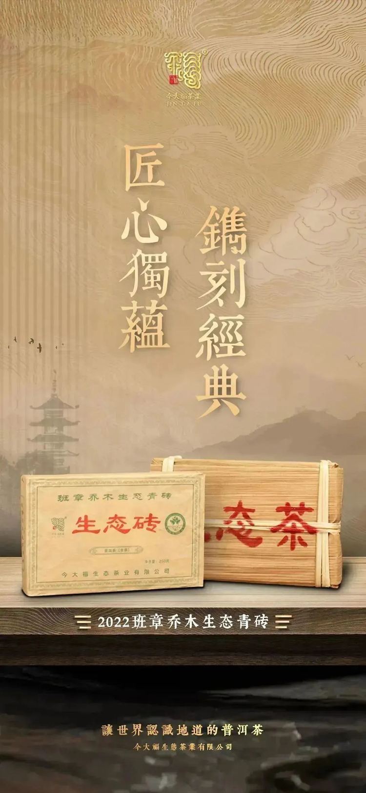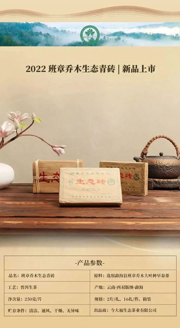 2022年今大福 班章乔木生态青砖 250克砖茶