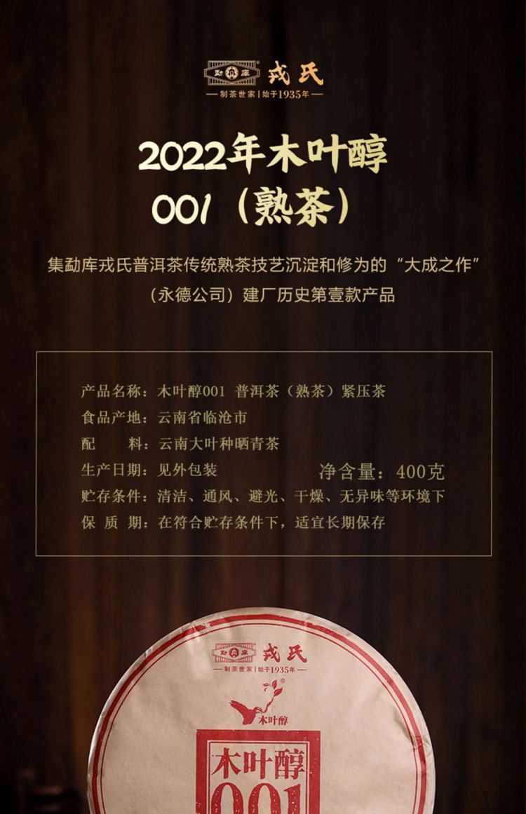 2022年勐库戎氏 木叶醇001熟茶饼 400克七子饼