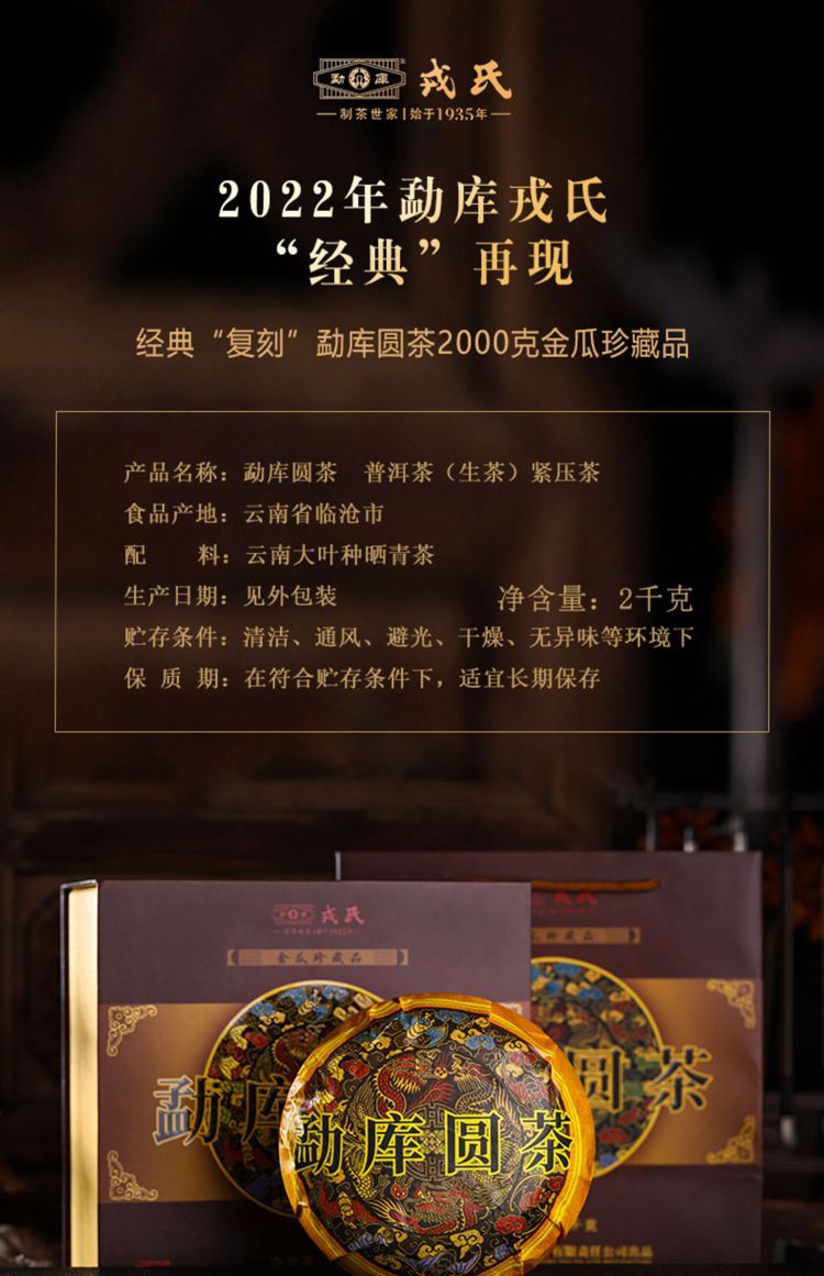 2022年勐库戎氏 勐库圆茶生茶 2000g瓜茶 盒装