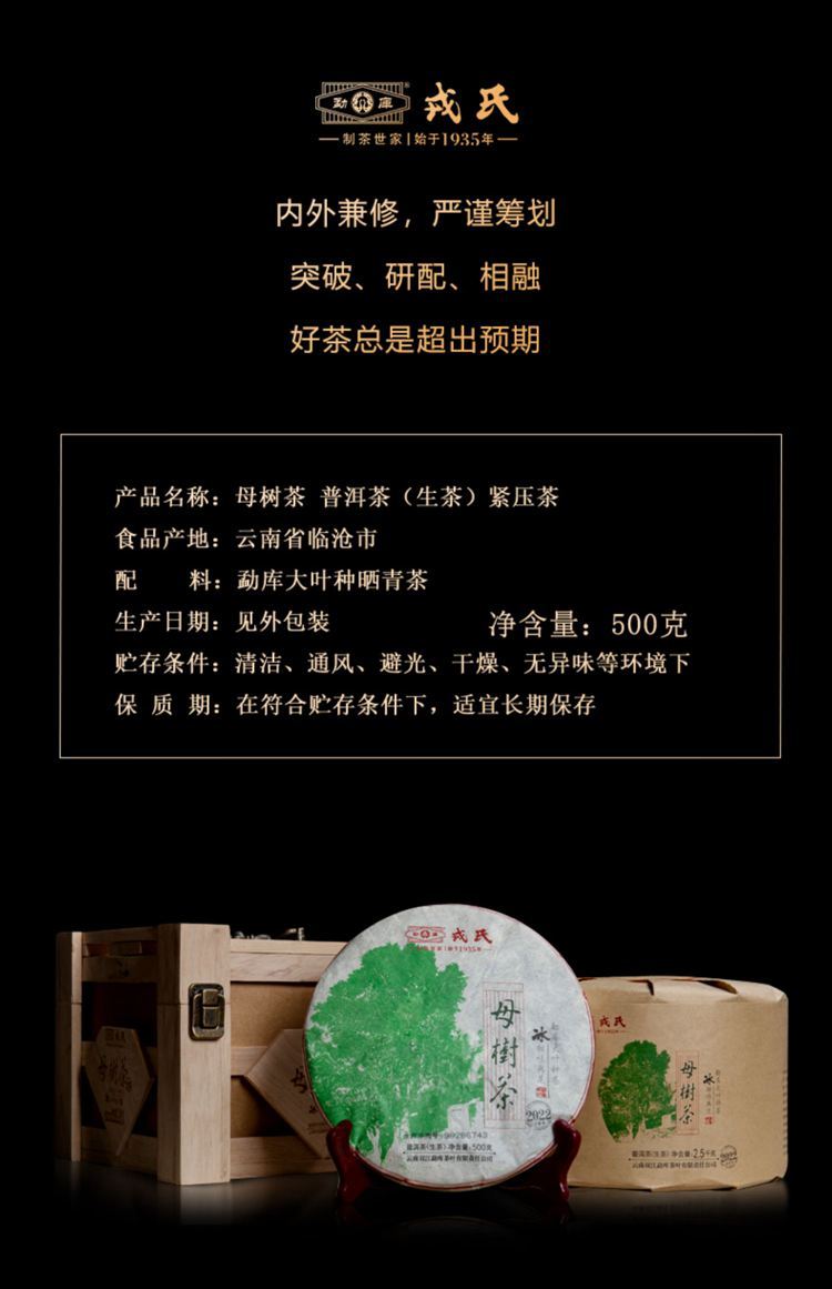 2022年勐库戎氏 母树茶生茶 500克七子饼