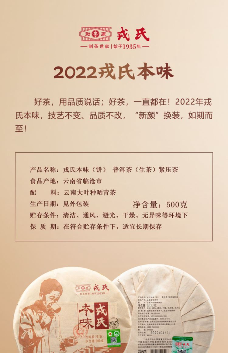 2022年勐库戎氏 本味大成生茶 500克七子饼