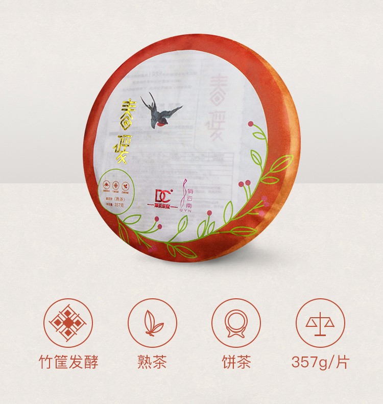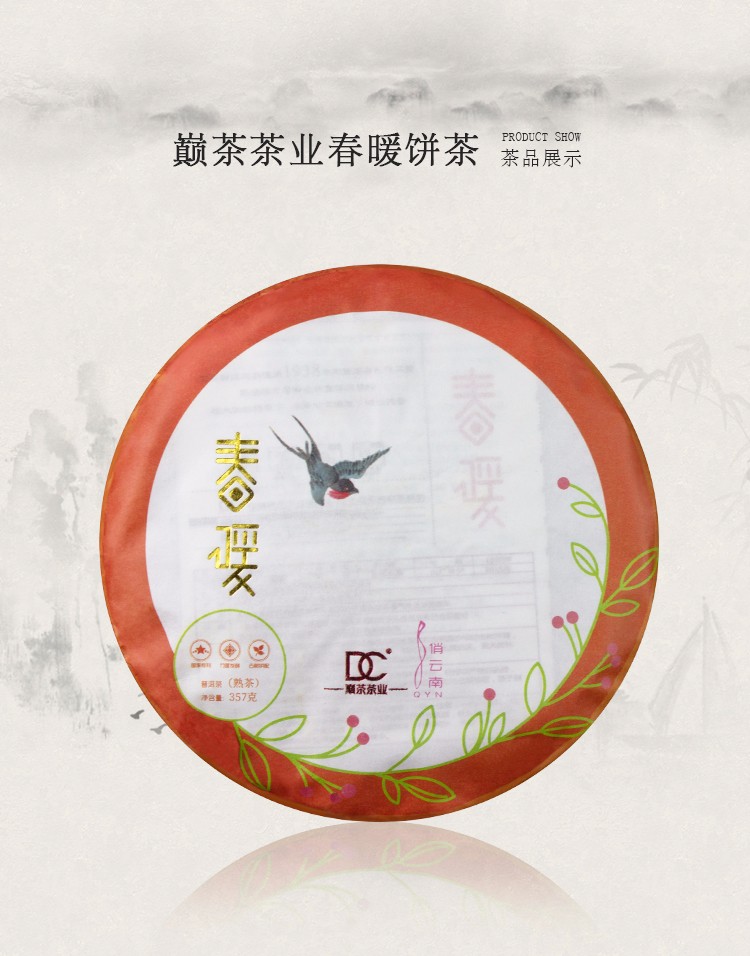 2018年巅茶 春暖 357克大树熟茶七子饼