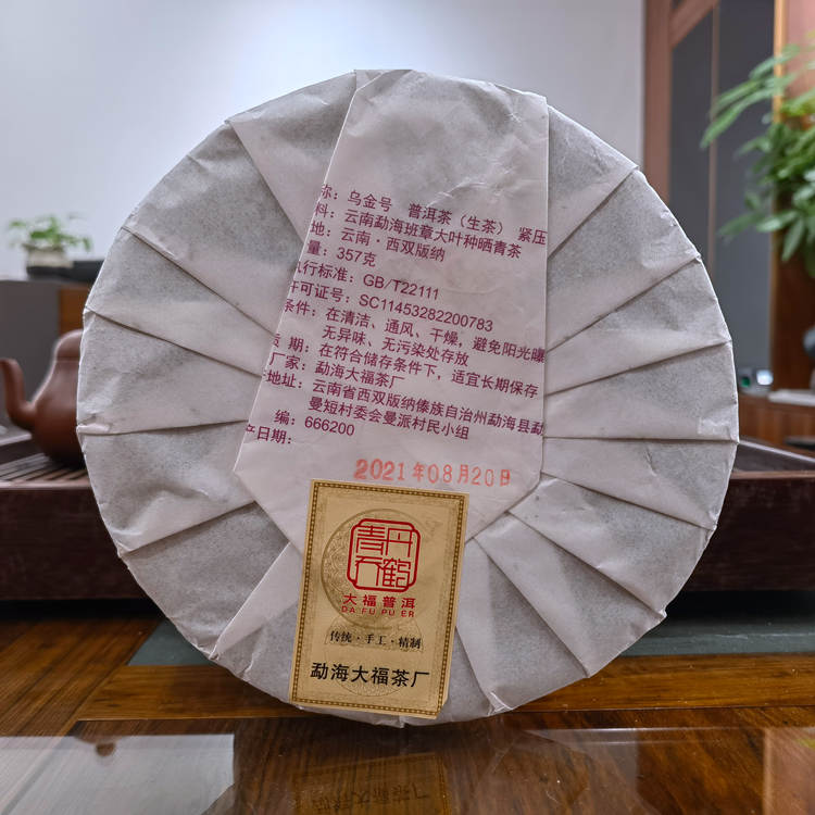2021年勐海大福茶厂 乌金号老树圆茶 357克七子饼生茶
