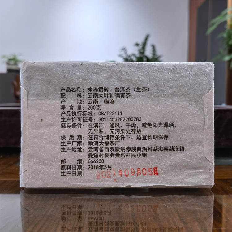 2021年勐海大福茶厂 冰岛贡砖生茶 200克茶砖