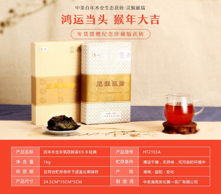 2016年中茶 安化黑茶 灵猴献瑞 1000克