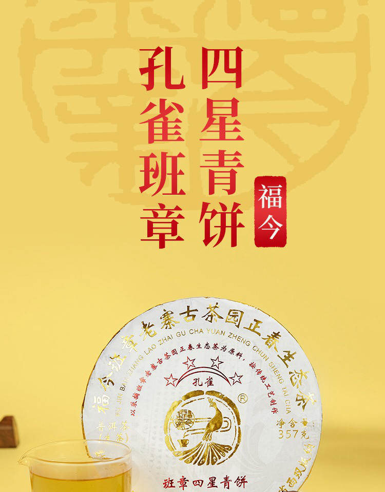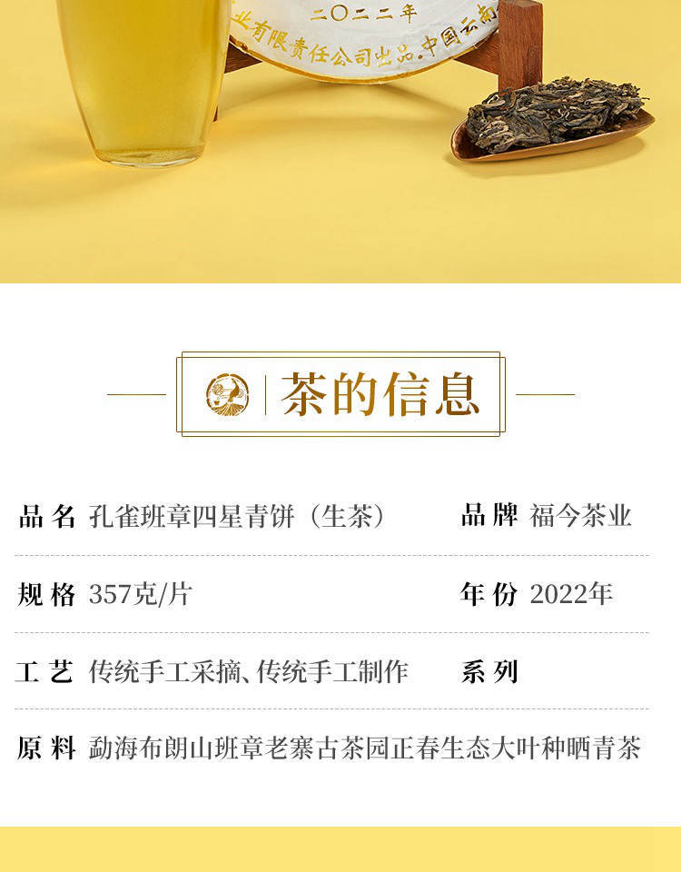 2022年福今茶业 班章四星孔雀青饼 357克七子饼