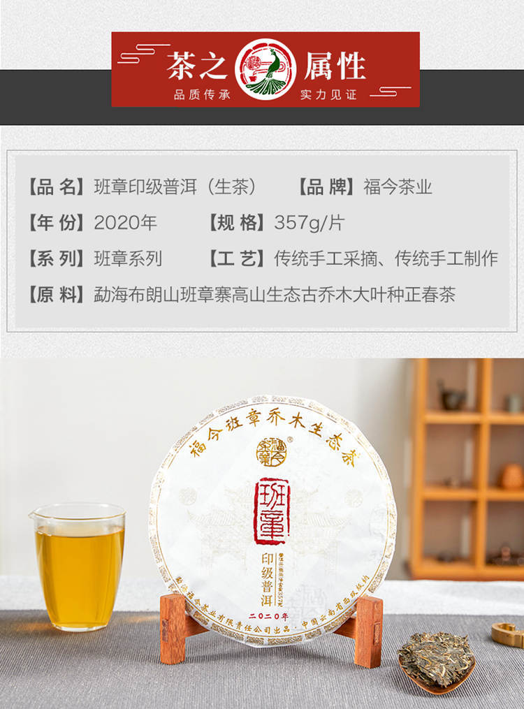 2020年福今茶业 班章印级青饼 生茶 357克七子饼