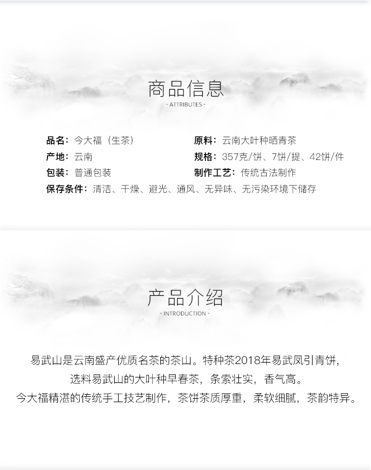2018年今大福 易武凤引青饼 生茶 357克 七子饼