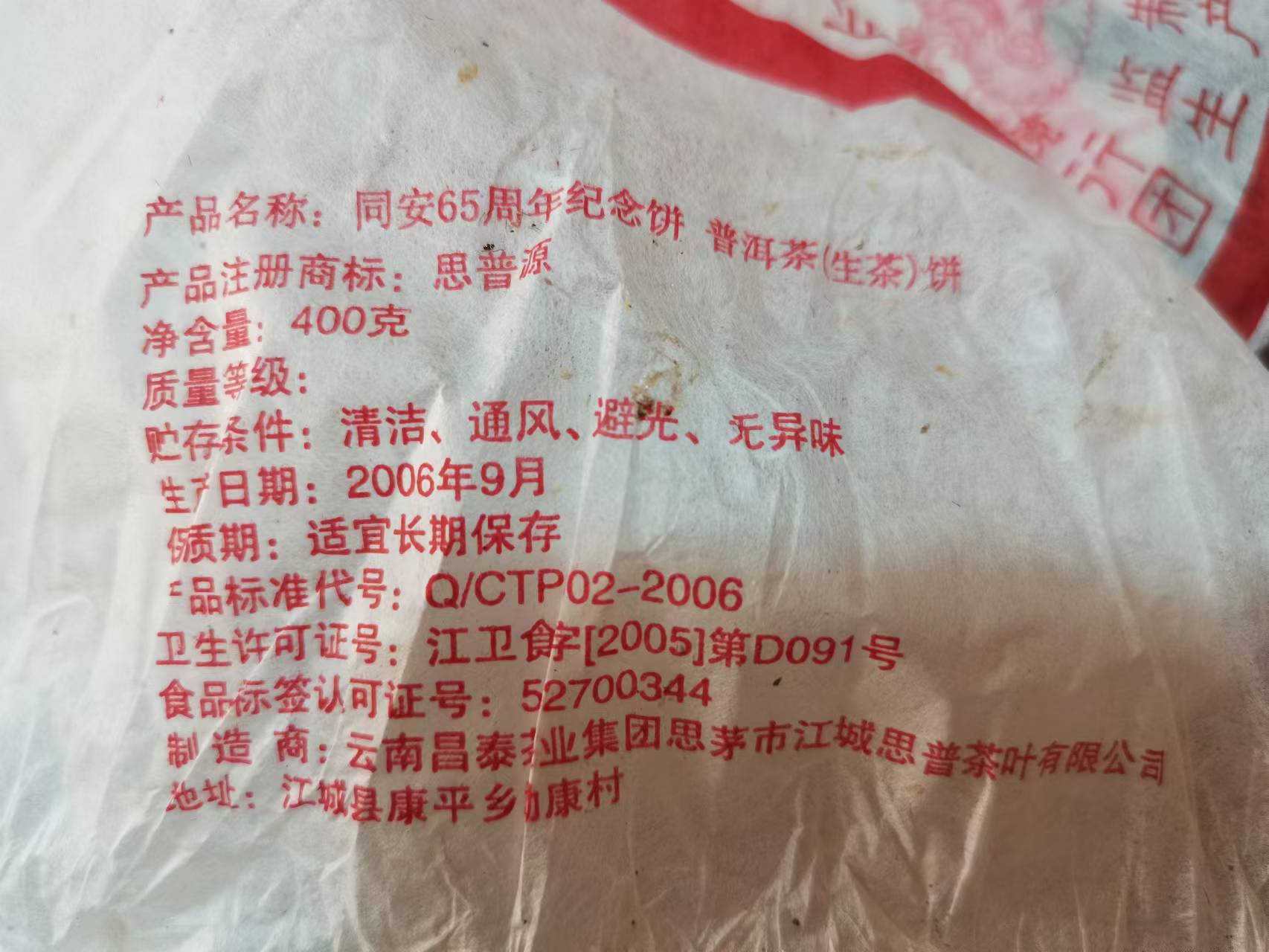 优惠价 2006年 易昌号 同安周年纪念饼 茶味醇厚