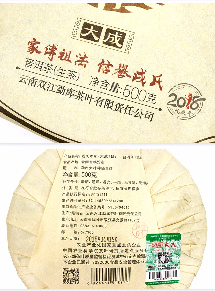 2018年勐库戎氏 本味大成饼茶 500克七子饼