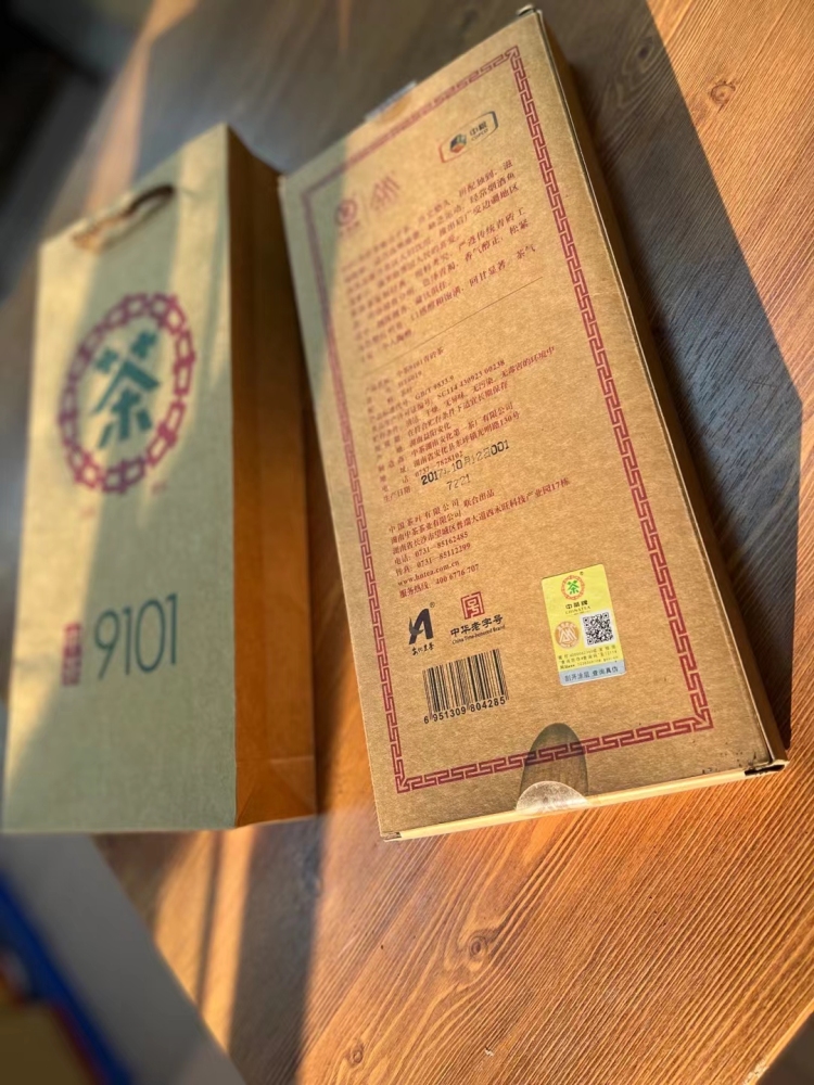 中茶9101青砖茶是一款青出于蓝而胜于蓝的复兴之作,采摘立夏前后鲜叶为原料,历经一年光阴自然发酵;摒弃传统青砖选料品质由表及里递减方案,均选用完整原叶,表里如一,产品质量更优。砖面平整光洁,外形色泽青褐,茶砖紧实;汤色橙红明亮,流光如琥珀琉璃,莹润明媚;茶叶中多酚含量、氨基酸、茶叶香气成分比例适当;茶气劲道、茶香纯正、不含杂质;滋味尚浓无青气,饮罢便觉回甘甜柔。限量发售24000片,上市即可饮用,无需存放多年,再现上世纪90年代“中茶”青砖传奇,堪称时光与工艺的杰作。