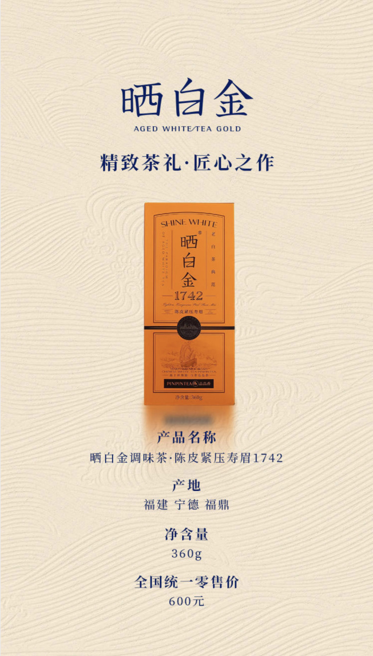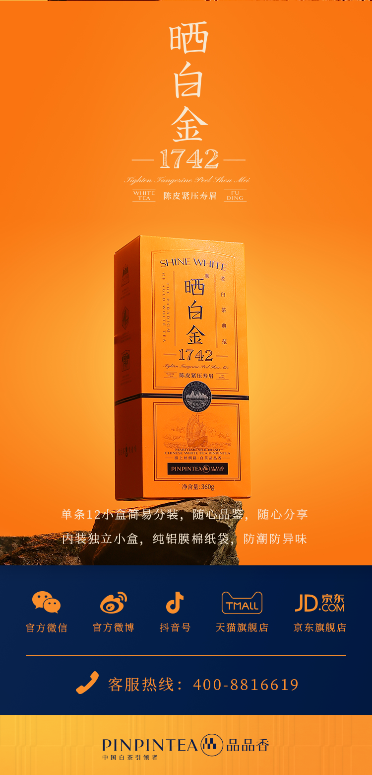 2017品品香晒白金调味茶陈皮紧压寿眉1742