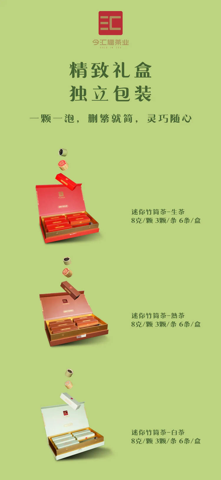 2024年今汇福 迷你竹筒茶生茶 144克礼品盒装