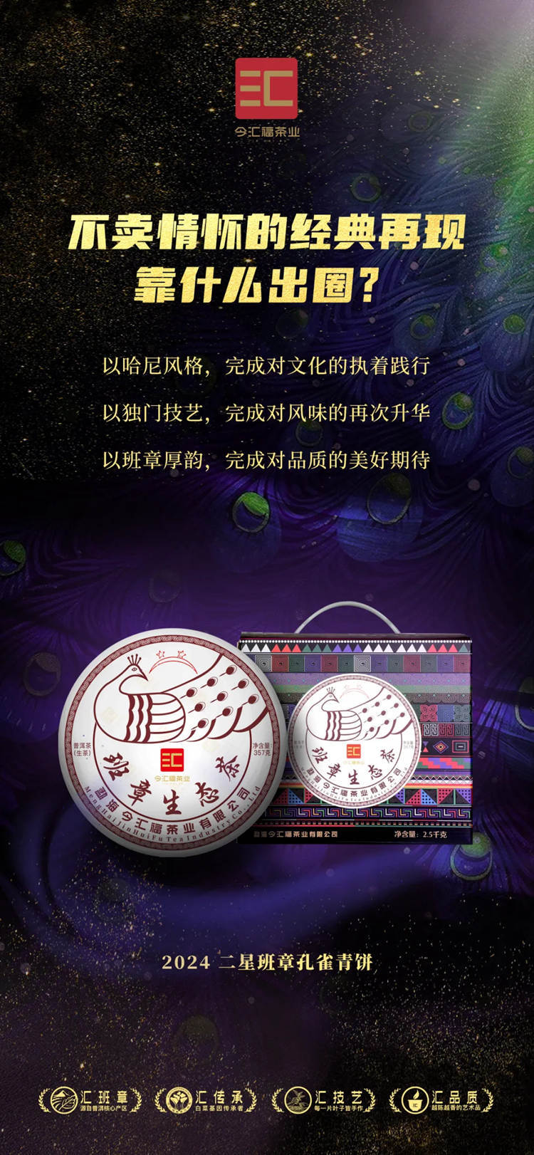 2024年今汇福 二星班章孔雀 357克生茶 经典七子饼