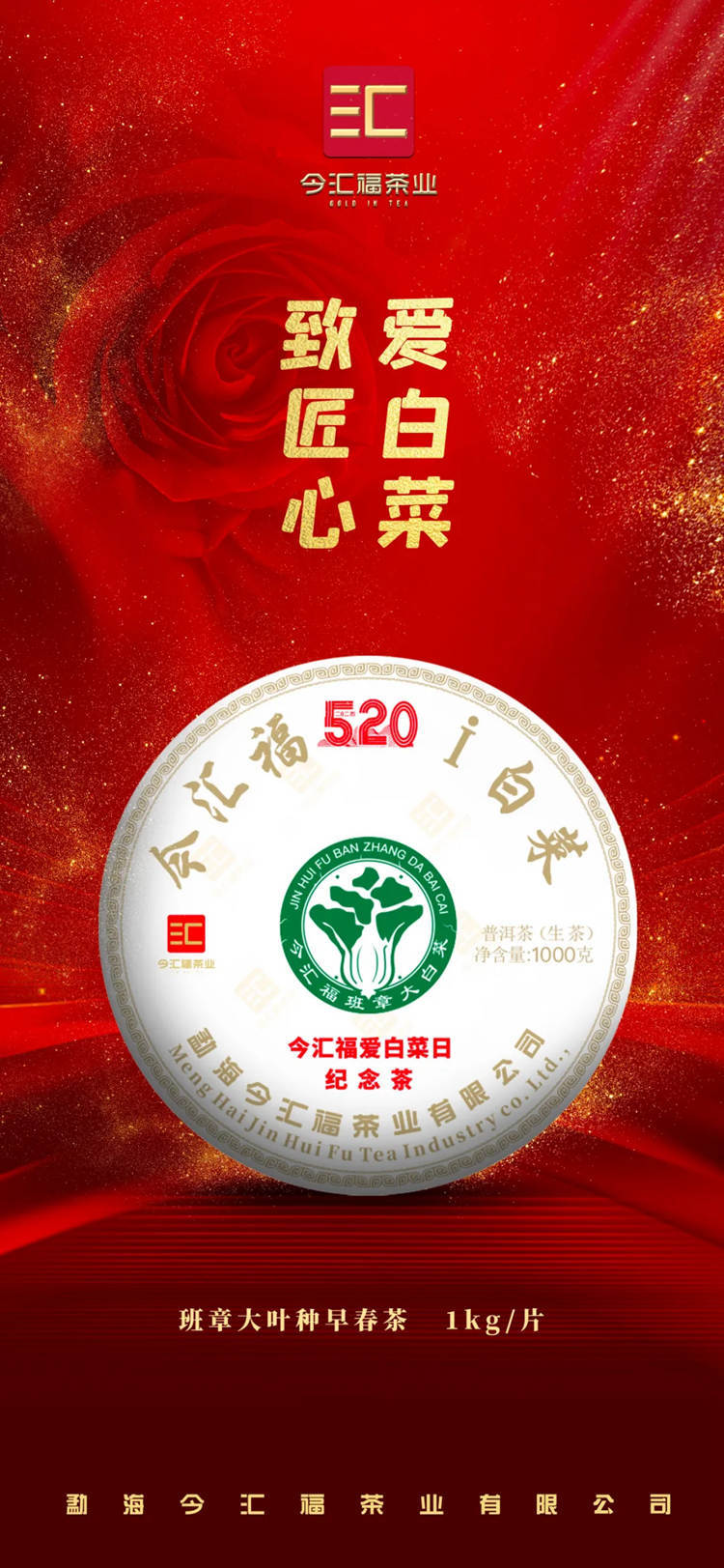 2024年今汇福 爱白菜纪念日 1公斤班章七子饼